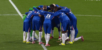 铁血蓝军,切尔西众将士聚在中圈打气喊话