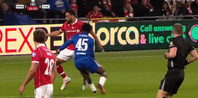 第14分钟,多伊尔飞铲桑托斯,裁判示意犯规
